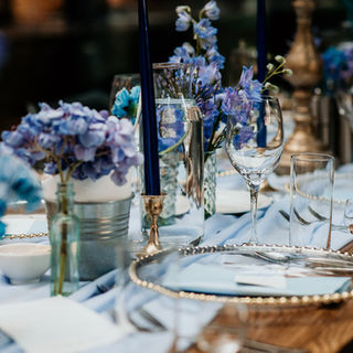 Najczęściej wybieraną dekoracją na stół Pary młodej jest długa girlanda. Wykonywaliśmy już jednak dekoracje na stół Pary Młodej na bazie luster, buteleczek, małych bukiecików, czy nawet scenografii z mchu i paproci w stylu leśnym. Posiadamy również wiele innych elementów dekoracyjnych, którymi możemy przystroić Twoją salę - kurtynę led, lampki „edisson”, przeróżne świeczniki, postumenty, amfory, a nawet ozdobne klateczki.